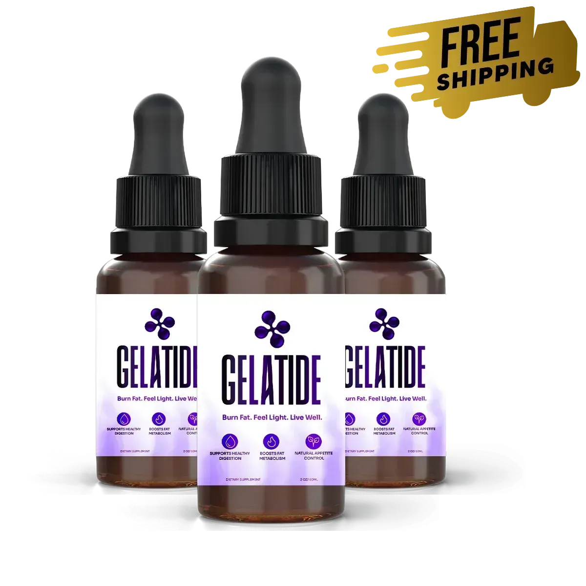 Gelatide is a liquid dietary supplement designed to support weight loss by enhancing metabolism, reducing cravings, and increasing energy levels.